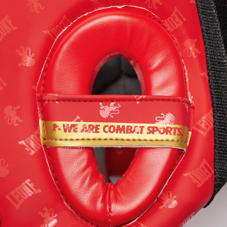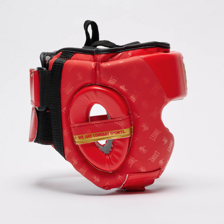 The Leone DNA Helmet with Cheek Guards is the ideal accessory for combat sports and martial arts athletes seeking maximum protection during training, combined with an iconic design. This Leone 1947 helmet belongs to the line that best embodies the brand's soul, with gold details and glossy and matte elements that enhance the Training model.