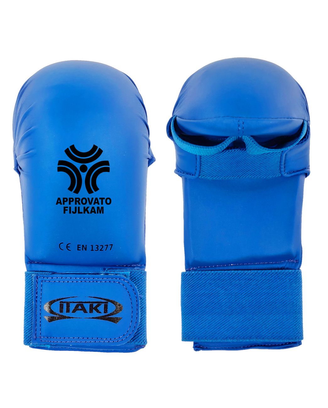 The FIJLKAM approved blue Itaki Karate kumite gloves are made with PU cover, soft and comfortable on the skin, guaranteed to last over time.